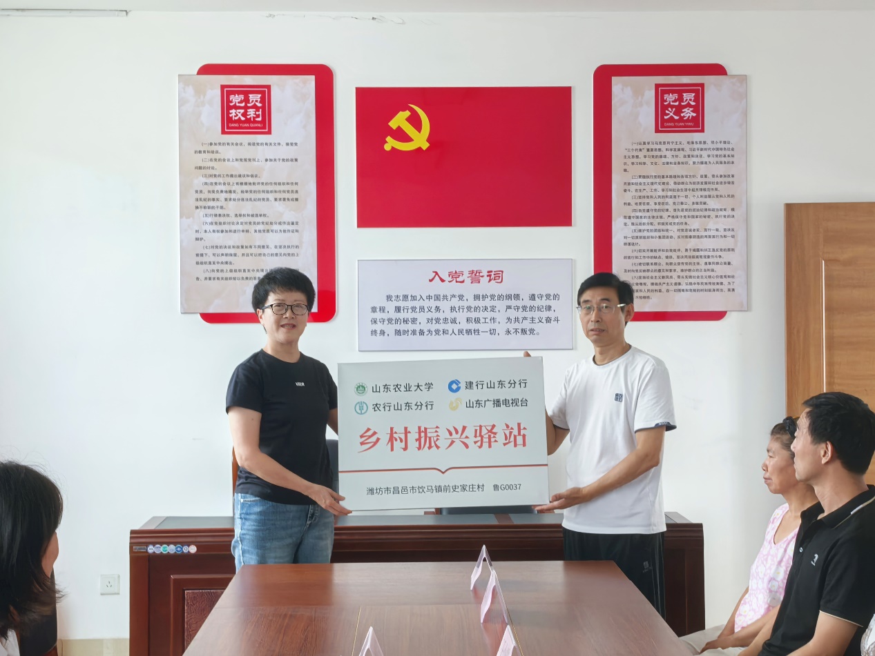 推进乡村驿站建设,工作组一行前往昌邑市围子街道南营村、饮马镇前史家庄村进行乡村驿站挂牌工作,并与当地村民沟通交流,积极向村民宣传推广乡村振兴驿站APP,帮助村民利用网络平台,高效快捷的解决在生产种植中遇到的各类问题,搭建学校与乡村联系对接的纽带。